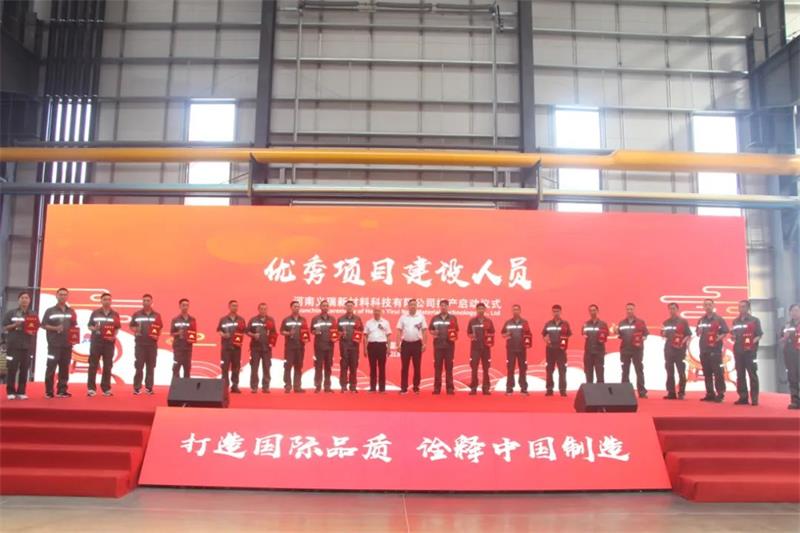 儀式上,總經理劉杰向長期以來關心支持明泰發展的各級黨委、政府,向各參建單位表示衷心的感謝,向在明泰鋁業高質量發展過程中取得“功勛集體”榮譽的項目部全體員工表示熱烈的祝賀。明泰鋁業堅持“創新、綠色、智慧、開放”的發展理念,踐行“高端制造+低碳經濟”雙驅動戰略,完成了明泰科技、明晟新材以及義瑞新材等幾個重要項目,在逆勢中鞏固了明泰的行業優勢,標志著明泰鋁業在高質量發展的道路上,又向前邁出了一大步。義瑞新材以58億元總投資,旨在打造“高端+綠色+智慧”一體化生產制造體系,是明泰鋁業單體投資最大的一個項目。項目建設充滿挑戰,我們抗擊了“7.20”特大洪災,克服了新冠疫情影響,突破了項目技術難題,處置了建設突發情況,全體參建人員患難與共,確保了項目按時按質順利實施。整個項目在不到10個月的時間里,就建成現代化標準廠房15萬平方米,各主要設備按時安裝到位,實現項目順利投產。未來,我們要把企業打造成為技術創新示范企業、綠色轉型引領企業、智能制造標桿企業和開放發展先鋒企業,堅定“項目為王”理念,通過建項目來擴產能、通過建項目來提質量、通過建項目來促轉型,實現企業高質量發展,為地方經濟社會發展貢獻力量,為行業發展增光添彩!